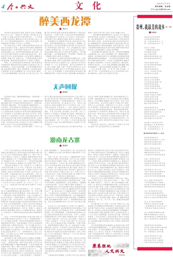我的家乡地处滇西北高原,是茶马古道上的重镇,素有“名兰之乡”、“龙潭之乡”等美誉。据记载,家乡有一百零八个龙潭,这在国内外都实属罕见。一个个清亮的龙潭,犹如明珠,镶嵌在这片离天很近的土地上,让每一个日子都充满亮丽的色彩。而在众多的龙潭中,西龙潭显得分外静美,分外动人,分外醉心。