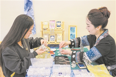“我自己尝试了一下,就感觉做这样精致耐看的文创产品是需要耐心的,感觉很新颖,也很有当地少数民族特色。”游客伍仕红惊喜地说。