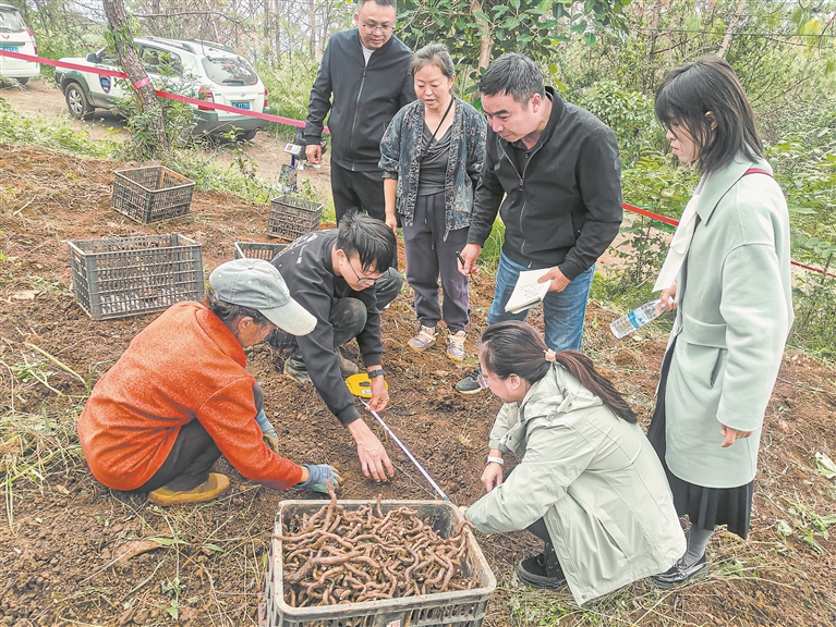 11月7日,市农业农村局组织农技专家团队,对木陇街道团结村林下魔芋种植基地开展测产验收,当地推广的优质白魔芋品种亩产达1928.9公斤。