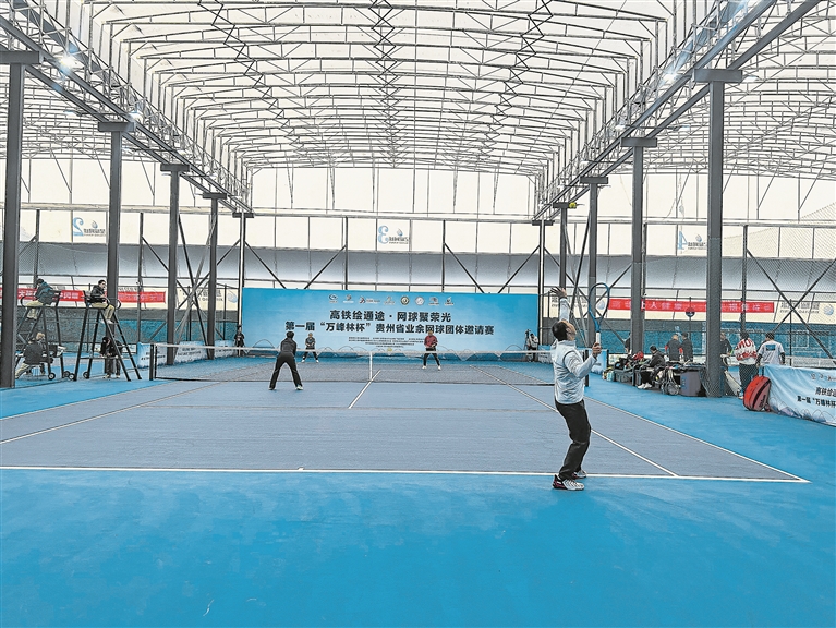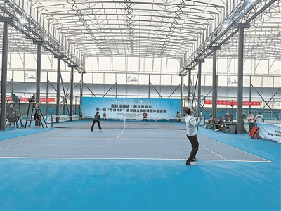 黔西南州网球协会会长陈文洪表示:“高铁开通对我们举办这次比赛帮助很大,选手们乘坐高铁前来参赛都很高兴。欢迎全省广大球友来黔西南参加比赛,希望通过这次赛事进一步提升本地的网球水平,营造更浓厚的运动氛围,带动更多人参与到网球运动中来。”左上图为比赛情形。